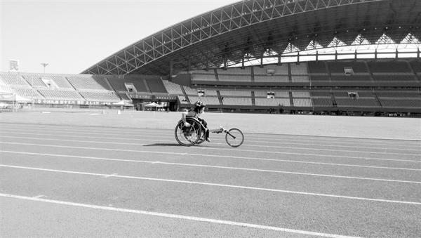 据了解,在轮椅竞速比赛中,运动员使用的是特制轮椅,还需佩戴安全头盔、专用手套、风镜等。比赛中,运动员每前行一段距离,必须抬头辨识一下方向,确定方向后再迅速埋头继续驱轮前行。