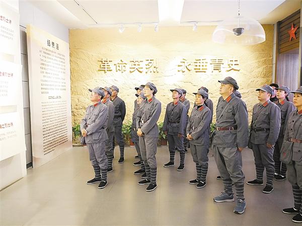 图一为在鄂豫皖纪念馆参观学习。图二为在鄂豫皖苏区革命烈士陵园浮雕前合影留念。②12