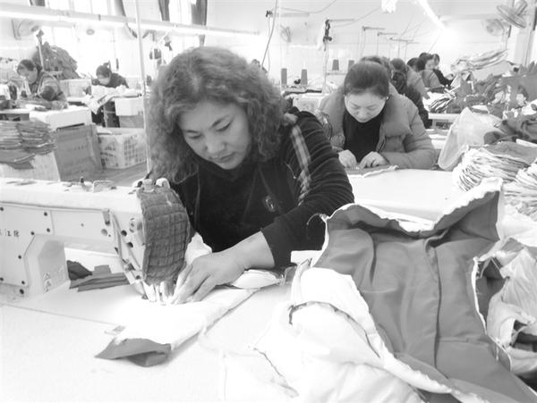 11月11日,沈丘县周营镇慧恩服饰来料加工点,当地十几名留守“巧媳妇”正忙着加工订单儿童冬季服装。