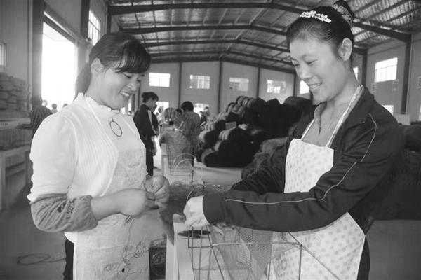 近年来,商水县千方百计发展以渔网、服装、日用品加工三大产业为主的“巧媳妇工程”480多个,安排10万余名以农村留守妇女为主的剩余劳动力在家门口就业,其中带动贫困家庭1.3万余人就业,仅此一项年创收30多亿元。图为11月10日,该县留守妇女孟金、孙美丽在离家不远的“巧媳妇工程”精准扶贫产业基地编织渔网。