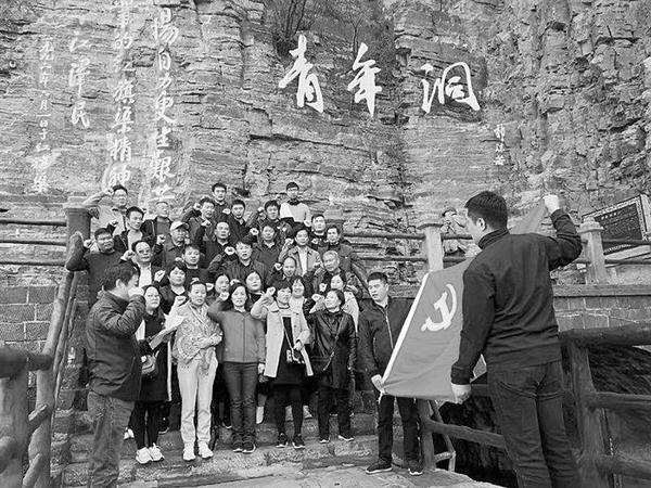 据了解,此次活动以“不忘初心,牢记使命”为主题,党员干部们聆听了专题报告,观看了纪录片《红旗渠》,深入学习红旗渠精神。党员干部们来到红旗渠纪念馆,看着当年建造红旗渠使用过的铁镢、铁锹、小推车等工具及影像资料,深深被林县人民不怕困难、坚韧不拔的精神所触动。通过重走红旗渠,亲眼目睹了劈山而建、穿山而过的人工天河世界奇迹,零距离感受当年拓荒创业的火热激情,无不被林县人民众志成城、勇于牺牲、无私奉献、不畏险阻的精神所感动。在红旗渠青年洞前,全体党员在党旗下庄严宣誓,重温入党誓词。(如图)