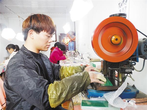 11月14日,在沈丘县周营镇周营村的一处电子来料加工点,几名工人正忙着为苏州一家电子公司加工生产一批电子元件。 近年来,该镇工商联合会以招商引资为依托,积极创办家庭微小来料加工点,带动当地留守村民就近就业。 谢辛凌 摄