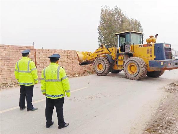 为打造“畅、安、舒、美”的公路通行环境,近日,西华县交通运输局组织执法人员80余人,出动铲车1台、执法车辆14台,对公路用地范围内的非法广告、占道经营现象进行集中整治。图为工作人员正在清理路边杂物。记者 张猛 通讯员 高雷 摄