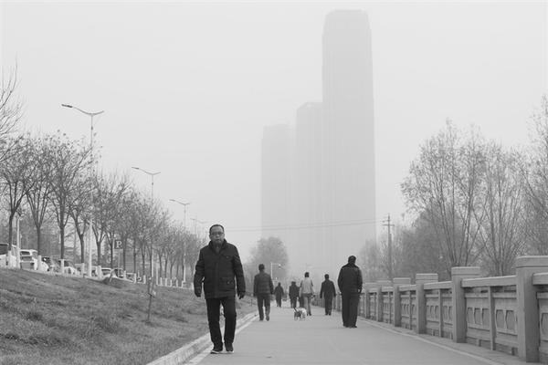 11月26日,在黄河兰州段沿岸,市民在浮尘天气中出行。受甘肃酒泉、张掖、武威等地扬沙和沙尘暴天气影响,11月26日凌晨开始,兰州市出现浮尘天气。新华社记者 范培珅 摄