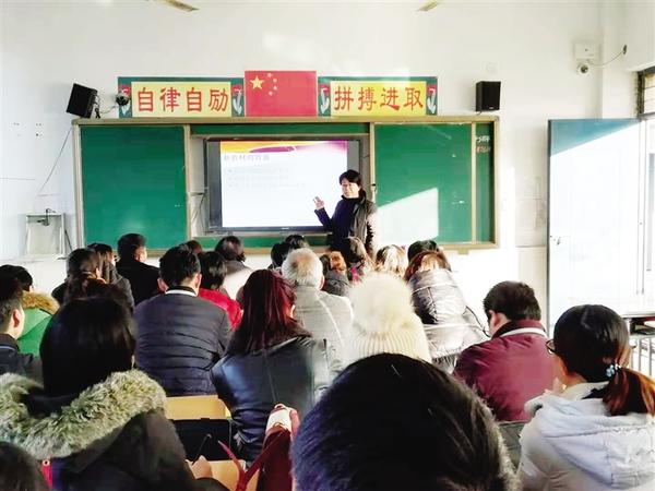 11月20日,周口新星学校九年级全体教师齐聚该校小学部教学楼,聆听省教育厅专家解读新教材。专家用教学实例全面解析了新教材。老师们纷纷表示,通过专家解读,学到了知识,明确了目标。 祝翠兰 摄