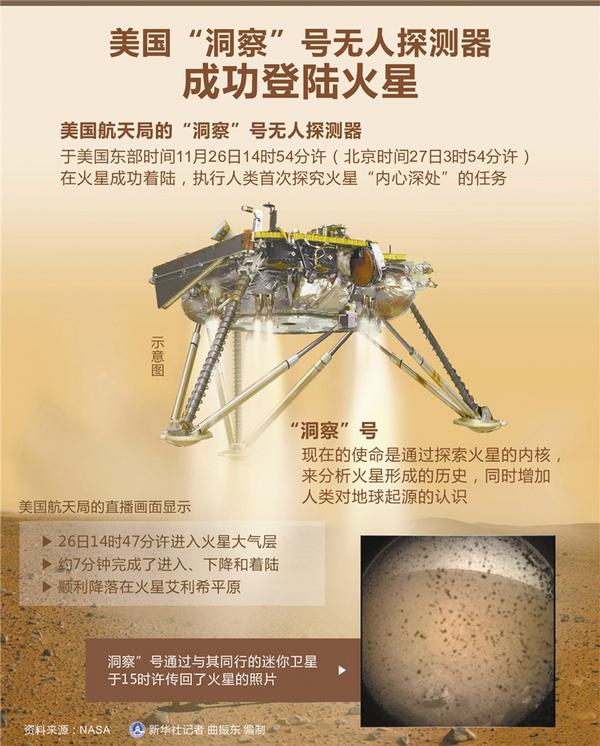 “我们来自何方,去向何处?”人类的自我追问是不断探索的原动力。从“好奇”号到“洞察”号,从表层的“好奇”到深度的“洞察”,折射出人类探索未知、不断前行的坚定步伐。(新华社北京11月27日电)