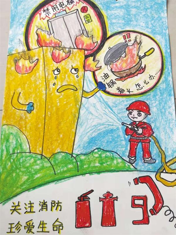 为进一步加强校园消防安全教育,增强广大师生的消防安全意识,提升广大师生的自防自救能力,“119宣传月”期间,周口港区消防工作室与区教育部门联合在辖区中小学、幼儿园开展了消防宣传绘画比赛。图为参赛作品之一。