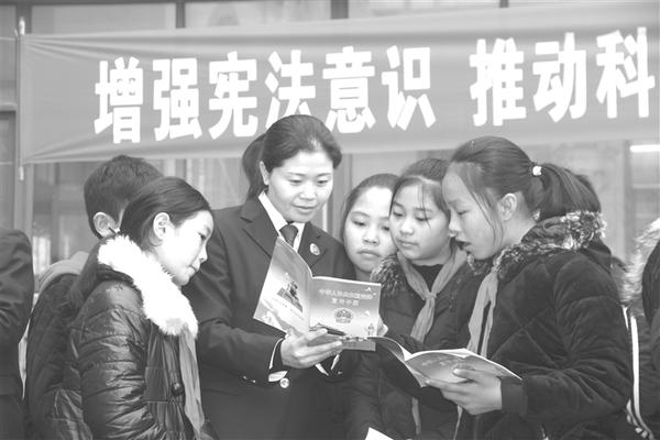 12月3日,荣获全国先进集体的扶沟县人民检察院“女检察官特别护未队”的检察官们走进该县新村小学,开展以“宪法进校园,法治伴成长”为主题的宪法宣传活动。