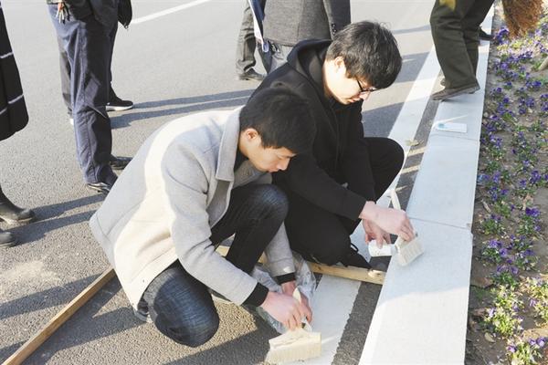 记者在现场看到,工作人员在每个路段随机抽查三个点,每个点上选取三个道牙和一平方米路面,把道牙和路面上的尘土分别用细刷一点一点地扫到一起,装到备好的容器里(如图),然后分别进行称重,以此衡量相关路段的保洁质量。东新区规定,对于排名最后一位的物业公司,按当月管理费的10%对其进行罚款,所罚款项用于奖励考评第一名的物业公司。