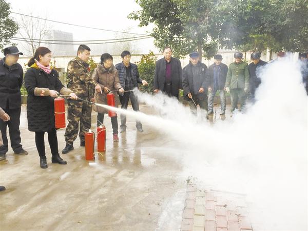 为确保敬老院老人安全过冬,12月4日上午,东新区人社局联合区消防大队对许湾敬老院开展安全隐患大排查,并举行消防演练。图为消防演练现场。