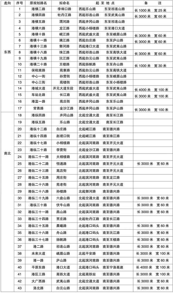 依据《河南省地名管理办法》(省政府令156号)规定,港区道路命名原则是以南北方向为山、东西方向为水的自然地理位置及港口功能定位、记忆乡愁等进行命名。现将周口市港区拟命名的43条道路名称予以公示,听取公众意见。欢迎社会各界对公示的道路名称通过电话、信函、邮箱等方式提出意见或建议。