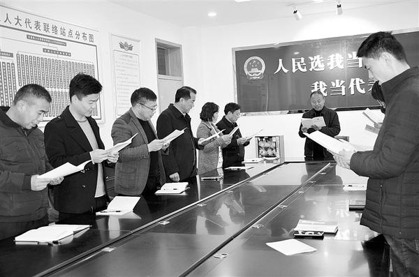 12月12日,太康县人大常委会机关工作人员在办公室一起朗读《中国共产党纪律处分条例》。