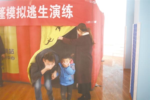 当日上午,河南省消防协会的宣传员结合省内外近期发生的重大火灾案例,向家长详细讲解了日常工作生活中遇到火灾后的逃生自救方法。随后,家长和孩子们在宣传员、幼儿园教师的带领下,参加火灾逃生模拟演练(如图)。