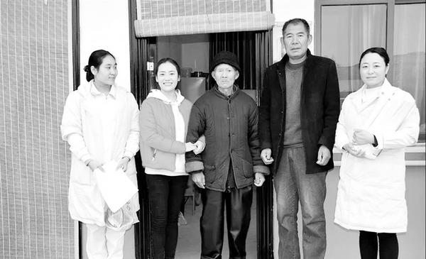 今年4月,郸城县城郊乡谷集村的五保户谷克章因病住进县第二人民医院骨三科。因为无人陪护,骨三科护士赵凤英、杨文文、崔文芳等人自发承担起照顾谷克章的职责,每天为他买饭,帮他按摩、剪指甲,陪他聊天,培养了深厚的感情。谷克章出院后,杨文文和同事经常到敬老院看望他,让他体会到了从未有过的幸福。图为杨文文和同事近日到敬老院看望谷克章(左三)。②7