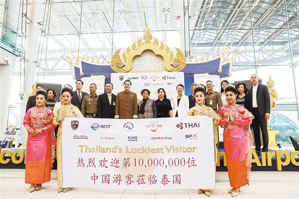 赴泰中国游客破千万创历史新高 12月19日,在泰国曼谷素万那普机场,泰国旅游和体育部部长威拉萨(第二排右九)和来自中国云南的何纬新(第二排右七)合影。何纬新当天下午抵达素万那普机场,成为今年第1000万名到访泰国的中国游客。泰国旅游部门及业界19日举行仪式,欢迎今年到泰的第1000万名中国游客,庆贺赴泰中国游客人数创历史新高。新华社记者 张可任 摄
