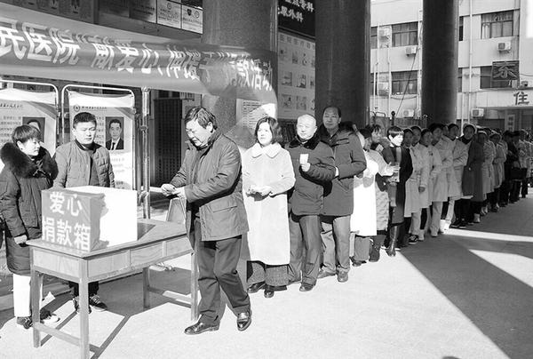 近日,郸城县第二人民医院开展“献爱心、伸援手”募捐活动,为该院职工张建民身患重病的4岁女儿筹集医药费。募捐当日,该院职工和各界群众400余人伸出援手,共捐款10.8万余元。图为捐款现场。记者 卢好亮 通讯员 孙磊 摄