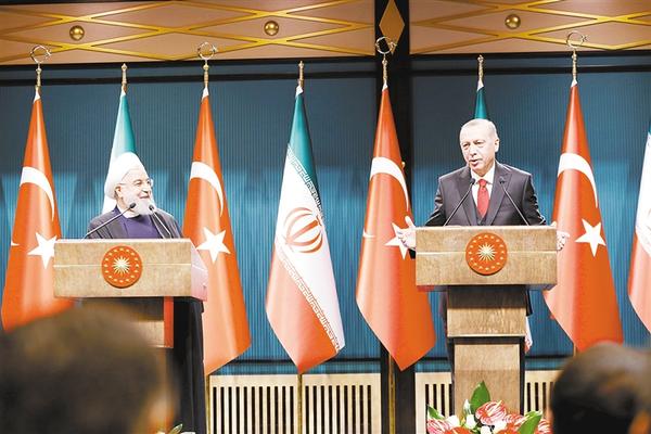 土耳其总统埃尔多安20日在首都安卡拉与来访的伊朗总统鲁哈尼举行的联合记者会上表示,美国对伊朗的制裁破坏地区安全与稳定,土耳其将继续与伊朗站在一起,加强两国各领域合作。新华社发