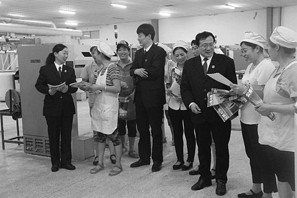 杨宏亚一行来到纺织厂车间与农民工亲切交谈,了解农民工生产生活、工资发放情况,耐心解答他们遇到的法律问题。农民工纷纷放下手头工作,与法官进行交流。“谢谢法官,为我们讲解了法律知识,告诉我们应该怎样正确维权,为我们农民工切身利益着想,以后干起活来,我们心里头踏实多了。”