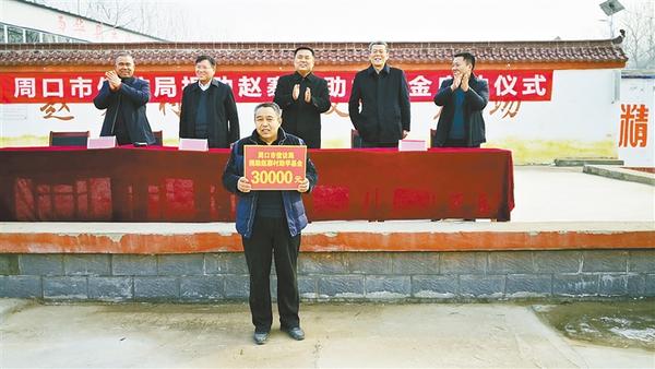 在简短的启动仪式上,市信访局向赵寨村捐助助学基金3万元。赵寨村党支部书记赵勇敢代表全体村民对周口市信访局发起设立助学基金这一举动表示衷心感谢,表示一定要管理好、使用好助学基金,并采取多种形式争取更多的助学基金,让更多的赵寨学子上得起学,用知识改变命运,用知识脱贫致富。