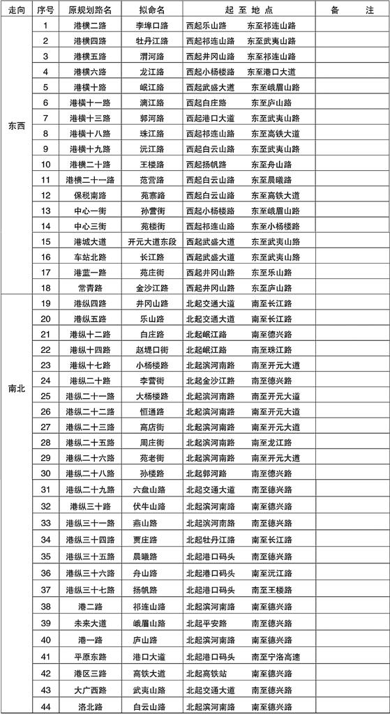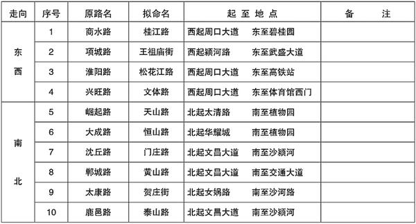 (一)周口市中心城区规划新建道路命名表