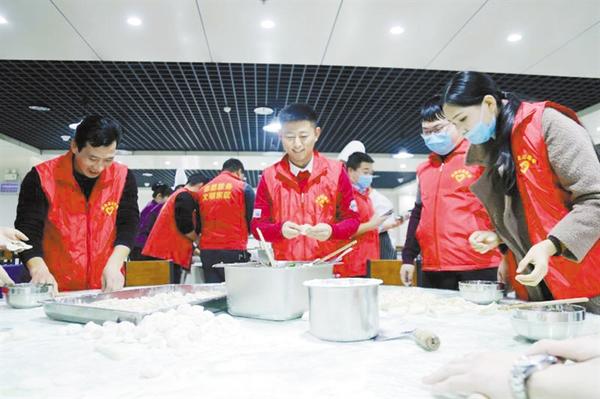 2018年12月21日上午,东新区党员志愿服务队组织开展“迎冬至 包饺子 明习俗”活动,让全区广大干部职工感受到浓浓的节日气氛。据了解,当天共有30余名党员志愿者参与本次活动。 记者 张劲松 通讯员 陈海涛 摄