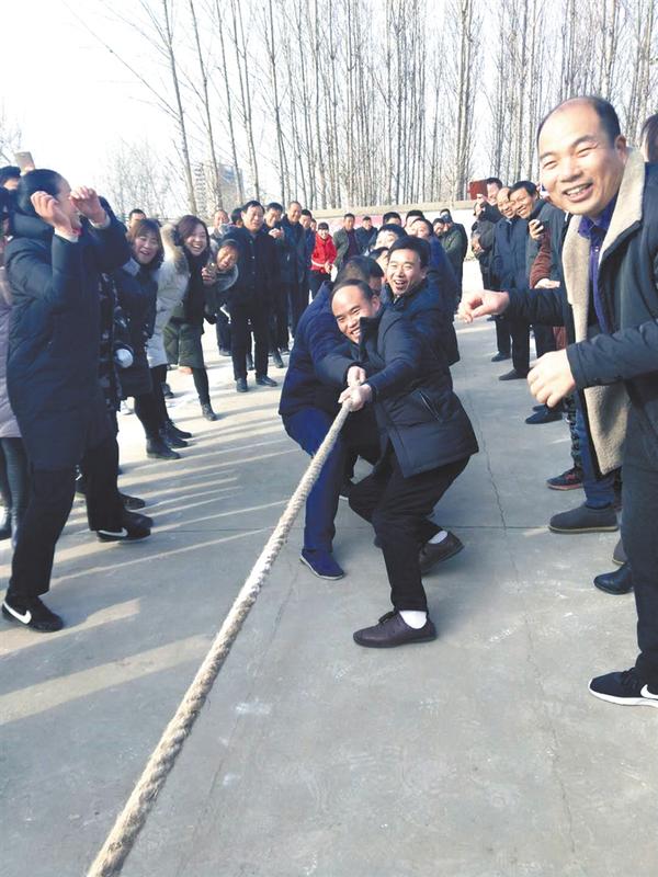 2018年12月29日上午,东新区许湾乡举办庆祝改革开放40周年暨庆元旦乡村干部拔河比赛。经过激烈角逐,男子组西南队获得一等奖,女子组机关队获得一等奖。 记者 张劲松 通讯员 马心如 王玉凤 摄