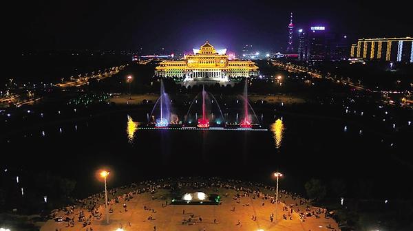 每到节假日,位于周口东新区和谐公园内湖面上的灯光水秀项目更是让市民们享受到全方位的声光盛宴,中央的主喷喷出的水柱最高可达80米,两侧的副喷喷出的水柱最高可达25米。