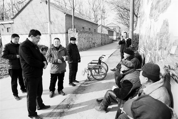 近日,郸城县公安局政委赵红建带领帮扶队员深入宁平镇陈堂、杨中楼行政村,入户走访群众,倾听群众心声,实地检查人居环境改善情况,了解群众对脱贫帮扶、平安建设等工作的满意度。图为赵红建与群众亲切交谈。