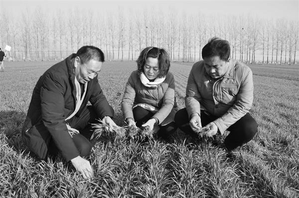 近年来,商水县持续加大农业供给侧结构性改革力度,依靠科技发展现代农业,扩大有机小麦、有机玉米、有机蔬菜等种植面积,促农业增产、农民增收。图为昨日,姚集镇腾达家庭农场经理徐建国陪同农业专家到麦田查看小麦长势。