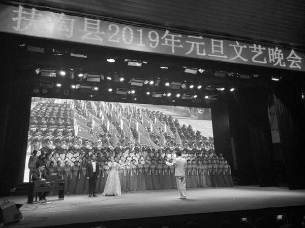 2018年12月26日晚,扶沟县2019年元旦文艺晚会在县人民会堂精彩上演。整场晚会节目编排新颖别致,令人耳目一新,传递了扶沟人民热爱生活、积极向上的正能量。尤其是桐丘之声合唱团演唱的《共筑中国梦》,唱出了中华儿女在以习近平总书记为核心的党中央的坚强领导下,坚定不移朝着中华民族伟大复兴的中国梦奋进的豪迈气概。②7
