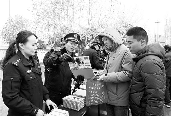 本报讯(记者 姬慧洋 文/图)1月10日是全国第33个“110宣传日”。当日上午,市公安局在周口市中心城区万顺达广场开展以“警民牵手110,共创平安迎大庆”为主题的集中宣传活动(右图),引导更多市民走近110、了解110、关爱110、正确使用110。