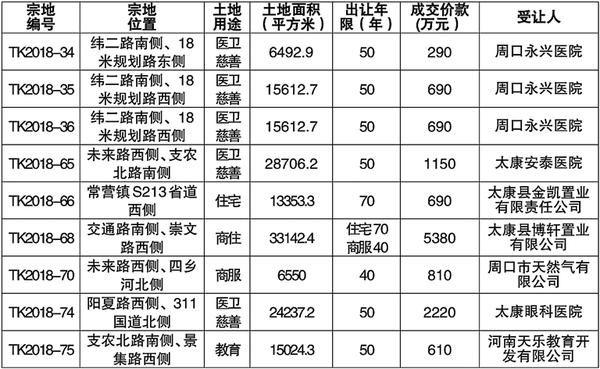 根据《土地管理法》《城市房地产管理法》《招标拍卖挂牌出让国有建设用地使用权规定》和《河南省人民政府办公厅关于转发河南省国有建设用地使用权网上交易管理办法的通知》等法律法规规定,遵循公开、公正、公平的原则,太康县于2018年12月27日至2019年1月7日挂牌出让9宗国有土地使用权。现将有关情况公示如下:
