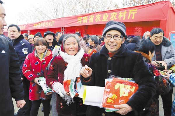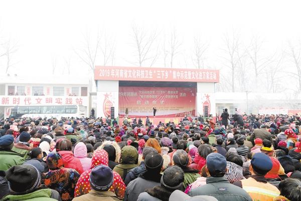 1月10日,雪花飞舞,天寒地冻,郸城县汲冢镇谢寨行政村文化大院里却暖意融融。2019年河南省文化科技卫生“三下乡”集中示范暨文化进万家活动在这里启动,来自全省的十多家单位让群众乐享“三下乡”盛宴的同时,还让群众感受到了党的温暖。②7记者 徐松 摄