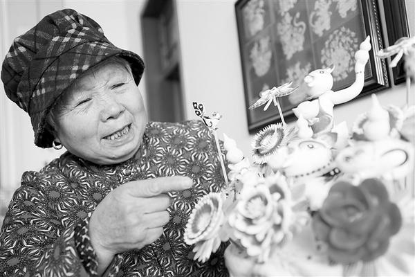 1月15日,合阳县72岁的面花艺人行俊肖在介绍她制作的面花。 春节临近,陕西合阳县的面花成了年节紧俏品,面花艺人忙着赶制面花,以供应节日市场。 面花是广泛流传于民间的一种风俗礼馍,也是一种民间工艺品。