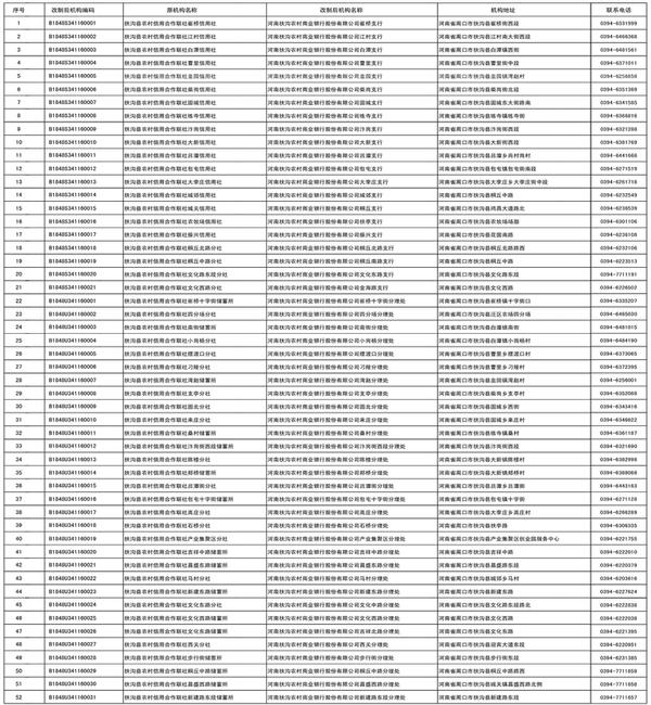 经中国银行保险监督管理委员会河南监管局批准,扶沟县农村信用合作联社完成改制并组建河南扶沟农村商业银行股份有限公司,批准开业日期2018年12月28日。中国银行保险监督管理委员会周口监管分局依法为河南扶沟农村商业银行股份有限公司及其52家分支机构换发了金融许可证,上述机构业务范围:许可该机构经营中国银行保险监督管理委员会依照有关法律、行政法规和其他规定批准的业务,经营范围以批准文件所列的为准。邮政编码:461300。现予以公告。