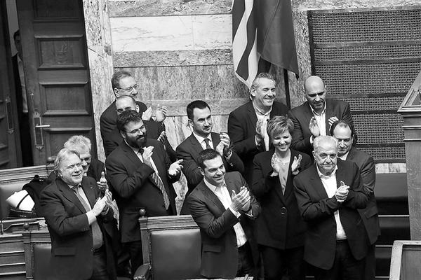 1月16日,在希腊首都雅典,希腊总理齐普拉斯(前排中)在议会鼓掌。