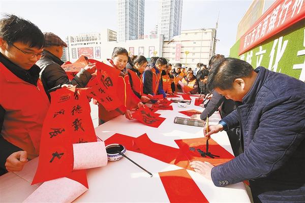 启动仪式结束后,市书协主席王猛仁携同我市10余名书法家现场挥毫泼墨,为现场群众免费写春联,送去新春的祝福,让广大群众提前感受猪年春节的喜庆气氛。②3