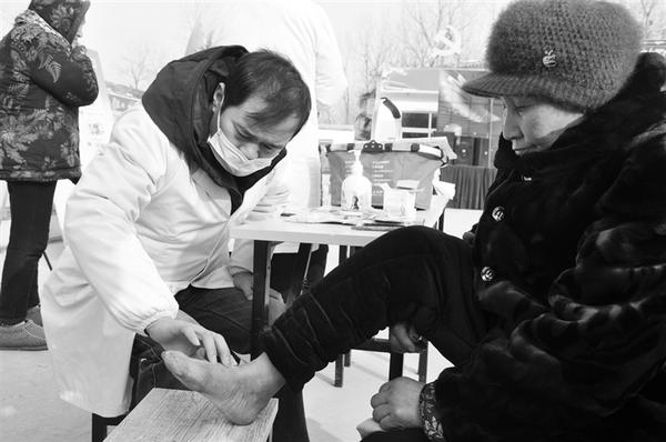 近年来,商水县中医院成立医疗服务队,经常深入乡村开展健康扶贫义诊活动,让贫困群众在家门口就能享受良好的医疗服务。图为县中医院服务队开展义诊活动的场景。 记者 付永奇 通讯员 王向东 摄