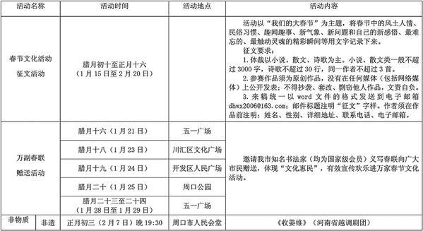 周口市“农商银行杯”2019年“欢乐进万家”春节文化活动安排表
