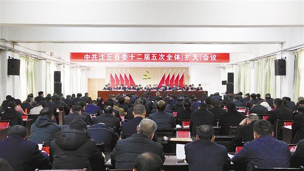 本报讯 (记者 韦伟 通讯员 柳柯 程健 郑东建 文/图) 1月9日,中共沈丘县委十二届五次全体(扩大)会议召开(如图)。会议以习近平新时代中国特色社会主义思想为指导,深入学习贯彻习近平总书记关于深化党和国家机构改革的重要论述,全面贯彻落实党的十九大和十九届二中、三中全会精神,省委十届七次全会精神和市委四届七次全会精神,对全县深化机构改革工作进行动员部署,为决胜全面小康提供坚强保障。会议表决通过了《中国共产党沈丘县第十二届委员会第五次全体会议决议(草案)》。