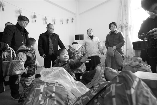 1月23日,周口市社会福利中心的孩子们在康教老师的帮助下试穿过年新衣。为了让周口市社会福利中心的孤残孩子们新年穿上新衣服,过一个快乐的新年,周口凯盛实业有限公司特意选购了70套过冬羽绒服送到市社会福利中心。
