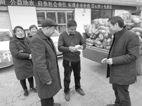 本报讯(记者 黄佳 文/图)继 “多方爱心接力——张老家滞销萝卜已售出40%”的消息见报后(见《周口晚报》1月22日6版),1月25日,中华联合财险股份有限公司周口分公司也伸出援手认购2.1万斤滞销萝卜,送给环卫工人和附近居民。