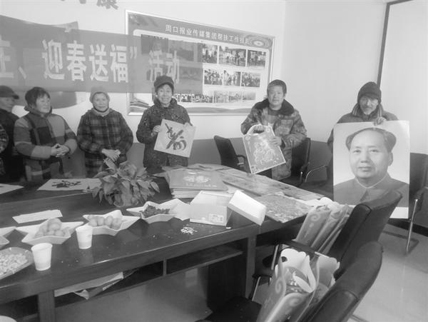 1月25日,周口报业传媒集团偕爱心企业佳利伟业、周口农商银行,邀请周口藉中国书协会员靳玉峰、曾祥峰等,来到淮阳县冯塘乡刘庄村,为群众义写、赠送春联500多套。图为群众展示春联。记者 李兵 摄
