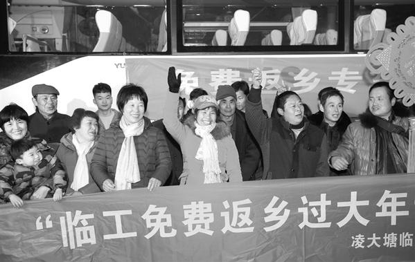 当日,安徽省合肥市包河区常青街道凌大塘临工集散中心开展“送您回家”公益活动,安排“爱心专车”免费送临工返乡过年。 新华社发