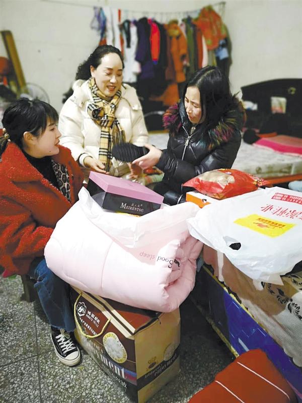 1月23日,市人大代表、太康县鑫源鞋业公司总经理薛华杰带着被子、鞋和过节物品,慰问太康县贫困户王英,给她家送去新春祝福。图为慰问现场。