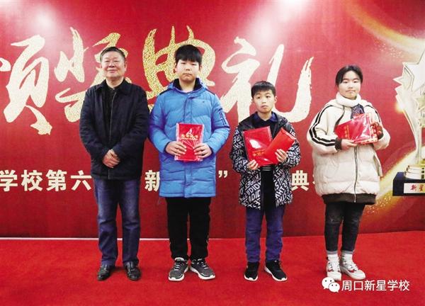 本报讯 (记者 陈军强 文/图 )1月24日上午,由周口新星学校主办的第六届“新星杯”综合素质测评颁奖典礼在该校举行。当日,该校共向学生发放奖金20多万元。周口新星学校董事长刘永文、周口高中校长李国有等参加了颁奖仪式。