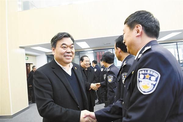 在市公安局指挥大厅,刘继标、丁福浩等认真了解可视化指挥调度系统运行情况。刘继标通过视频指挥系统向全市广大公安民警及其家属致以新春的问候。他说,2018年,全市公安机关和全体公安民警在以王平同志为班长的市公安局党委的坚强领导下,攻坚克难、迎难而上,各项工作都上了新台阶、有了新提升。刘继标衷心感谢全体公安民警为全市经济社会发展和社会治安大局稳定作出的突出贡献,希望大家在新的一年继续发扬优良的传统和良好的工作作风,再接再厉,不断取得新的更大的成绩。
