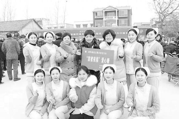 1月28日,河南省首届百场乡村春晚大联欢在西华县李方口村文化广场精彩上演。当天,周口妇产医院红心圆志愿者服务队表演了舞蹈《爱的奉献》,把最诚挚的祝福送给该村村民。另外,周口妇产医院还向该村400多户村民发放了近1000袋麻糖。图为表演结束后,该院医护人员合影。记者 马月红 摄