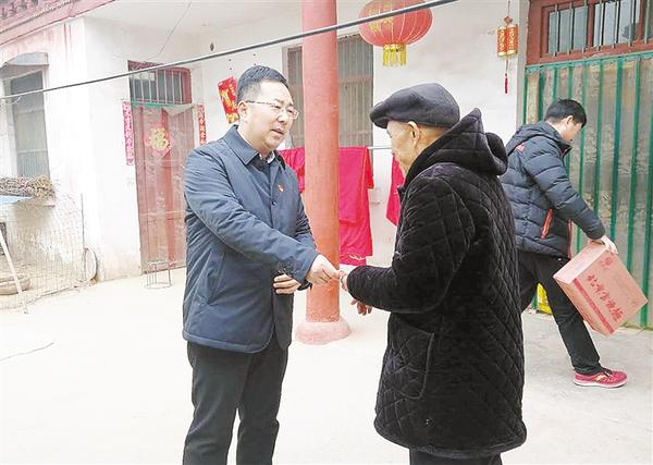 图三:1月29日,西华县委常委、组织部部长胡军华到田口乡陈楼村、迟营乡杨楼村和孙庄村走访慰问老党员、困难党员和贫困群众,为他们送去党和政府的关怀和温暖。