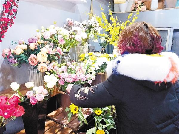 2月3日,一位顾客在挑选鲜花。春节期间,中心城区多个花店照常营业,吸引市民前来选购鲜花。②5 记者 王朝辉 摄